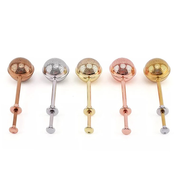 Colorful 304 stainless steel ball shape tea infuser with telescopic push handle